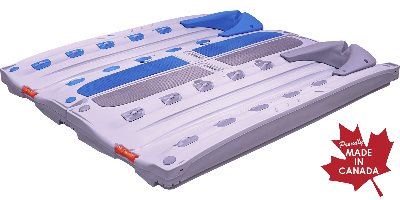 The Eva foam walkway mat is an option available for the DockinaPort®. This is very popular, and DockinaBox® is the only manufacturer to offer it. This is the same material you see on all premium paddle boards. It does not get hot and gives incredible grip.