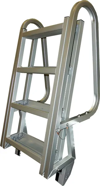 One of the greatest features of the ST Ladder is its fold down-up design. By releasing the locking pin the ladder folds to a comfortable 20 degree angle in the water. This keeps the ladder steps out of the water, free of floating debris and makes for effortless winter storage. The top steps have a slight ovular shape with comfortable ridges for traction and comfort.
